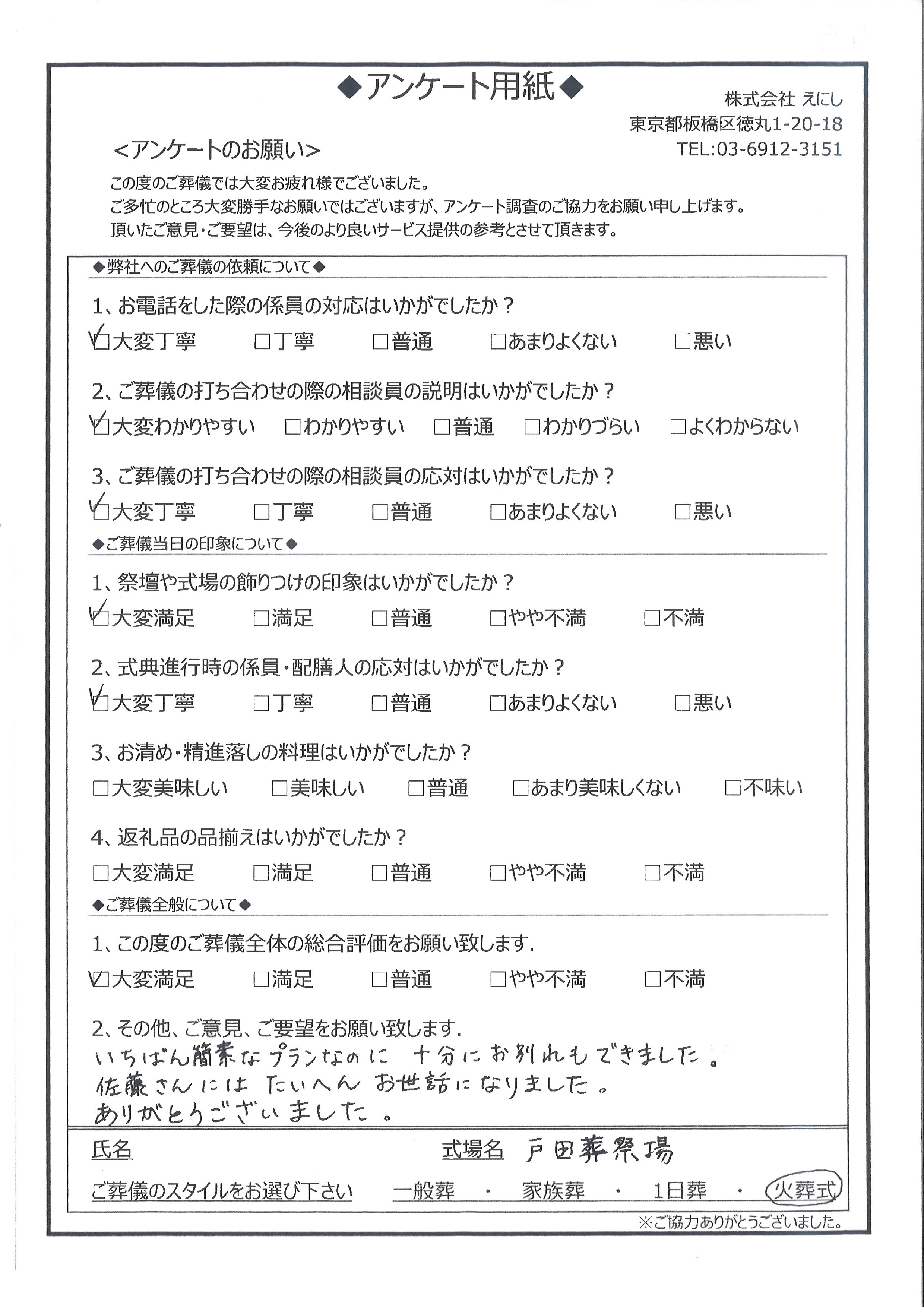 【お客様アンケート】練馬区 K様 ‐ 葬儀のえにし