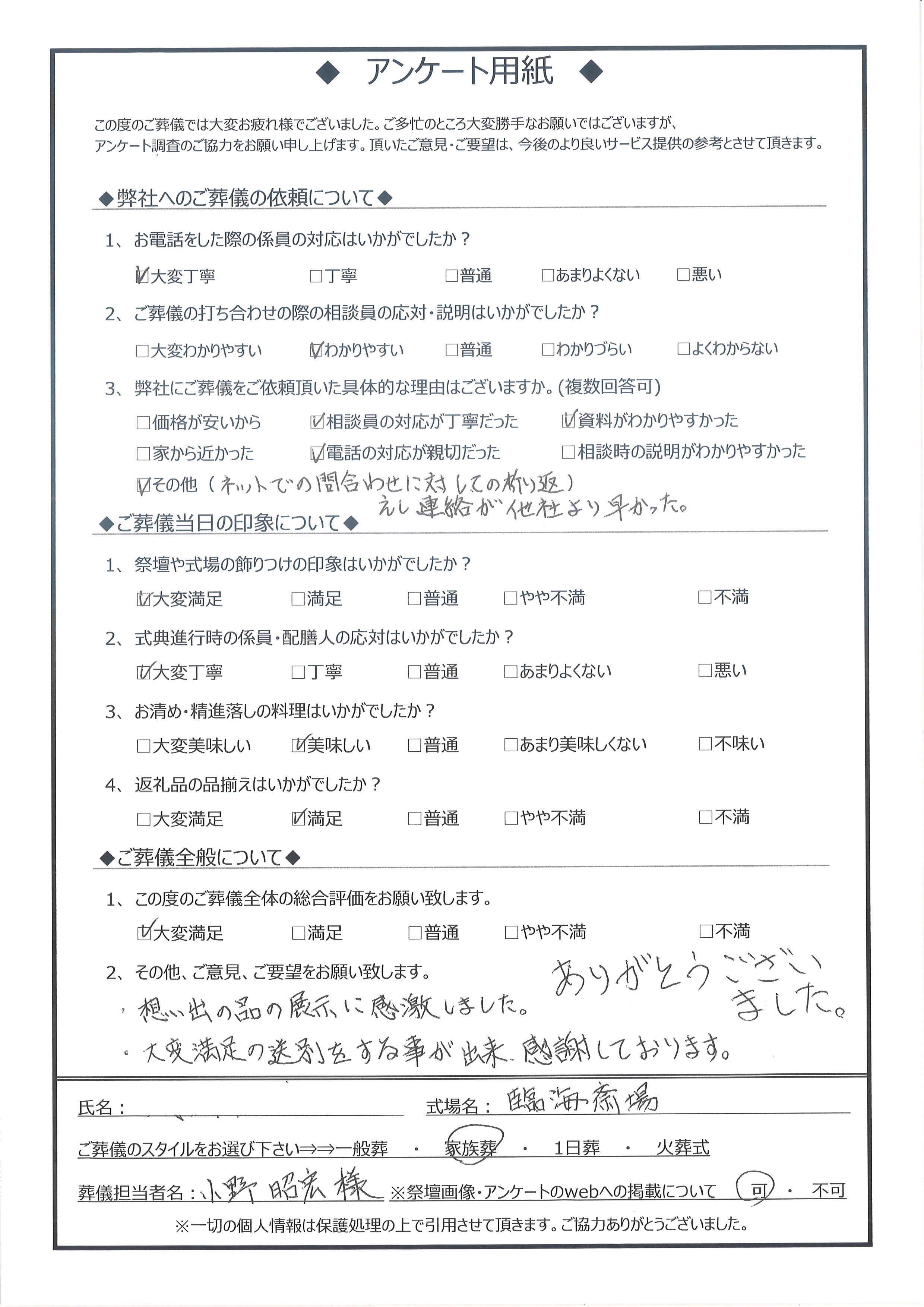 【お客様アンケート】品川区 A ‐ 葬儀のえにし